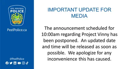 The Peel Regional Police News page serves as an official source of information for both the public and media. This section provides timely and accurate access to news releases, media advisories, and community updates related to policing initiatives and public safety in the Region of Peel. Members of the media and the community are encouraged to refer to this page for verified information on Peel Regional Police operations, programs, and events.