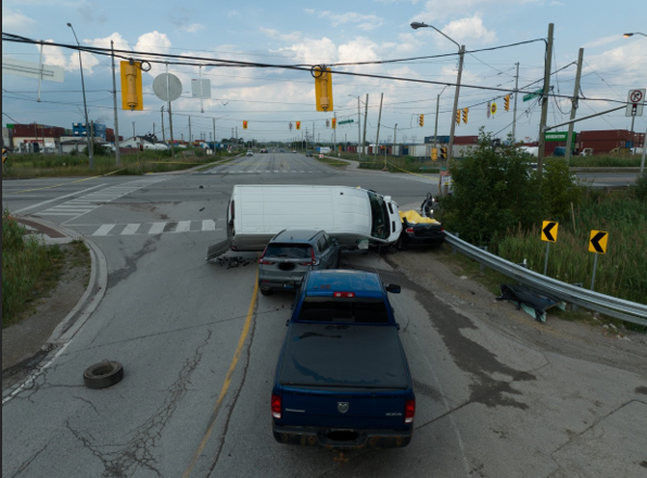 On Saturday, July 5, 2025, at approximately 4:15 p.m., a four-vehicle collision occurred at the intersection of Highway 50 and Coleraine Drive in Brampton.
