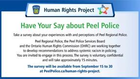 A link to the survey can be found here and on the Peel Regional Police website and the Ontario Human Rights Commission website.