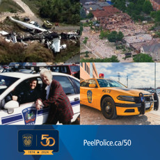 On January 17, 2024, Peel Regional Police launched a year of celebrations to mark our 50 years of service to the communities of Brampton and Mississauga. Peel Regional Police continues to strive to be one of the most inclusive, innovative, and progressive policing services in Canada. Over the years, we have evolved and are dedicated to a community policing model. We are grateful for the community we work with that continues to inspire us daily. Peel Regional Police is thankful to all our members, past and present, for their unwavering commitment to public safety and our community.