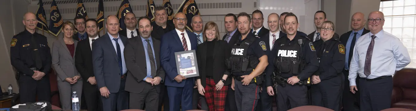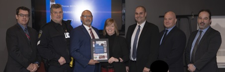 On November 28, 2019 members of the Montreal Police Service Major Crime Section attended Peel Police and presented members of the investigative team with a plaque recognizing the significant efforts of our members. Also in attendance was Mr. Yves Riopel from the armoured car company Garda who thanked the team on behalf of the staff and management.