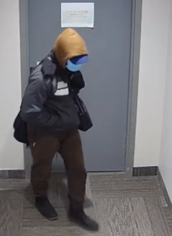 Levy is described as a male, Black, 5’7”, approximately 180 lbs with short black hair, brown eyes, and a dark complexion. He was last seen wearing black North Face Jacket, black pants, blue Nike hat. During the break and enters, Levy is known to wear a medical mask concealing his identity.