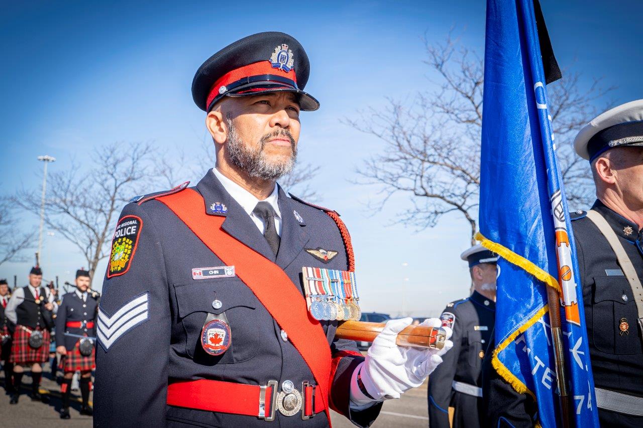 The Peel Regional Police Chief's Ceremonial Unit was founded in 1991. Also known as the Honour Guard, the Chief's Ceremonial Unit is made up of approximately 40 sworn police officers. Members volunteer their time at various functions throughout the year. Their mandate is to participate in community and special events, memorials, police funerals and to represent the Chief and Peel Regional Police locally and internationally.